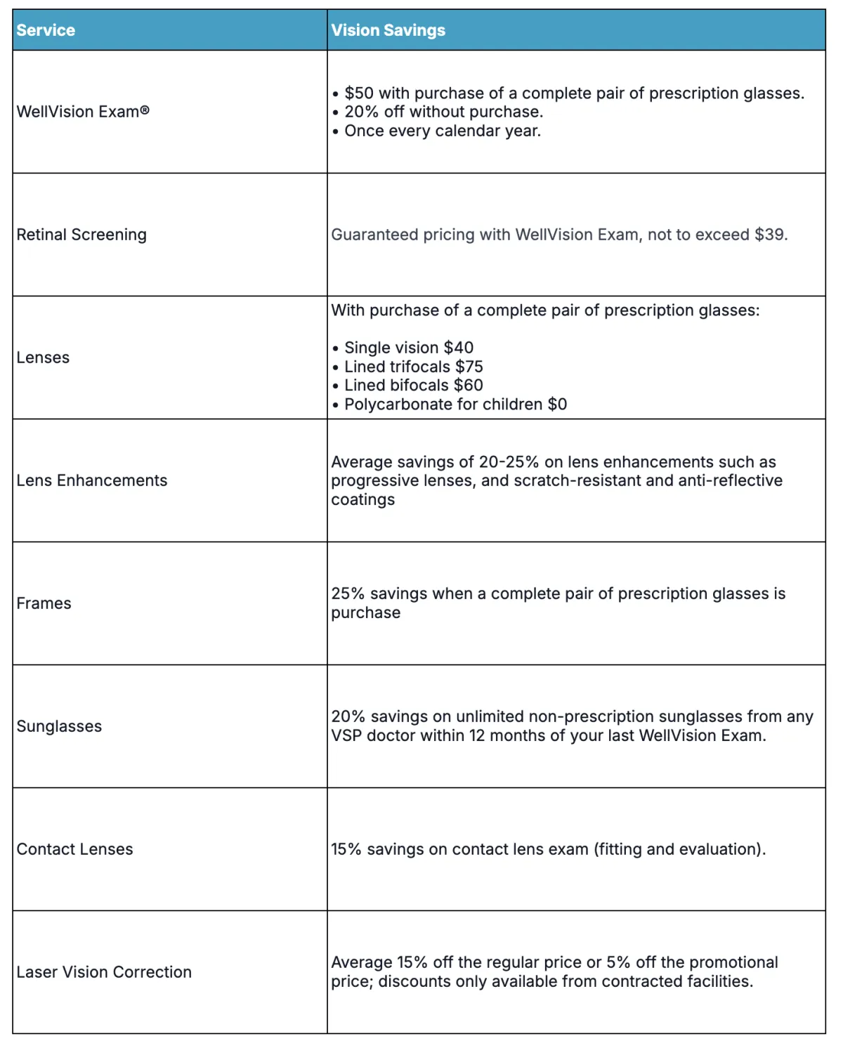 Each plan includes discounts on dental services (cleanings, extractions, orthodontics), vision services (exams, lenses, frames), unlimited 24/7 telemedicine, and consultations with primary care physicians. The discount percentage varies depending on the plan you choose.